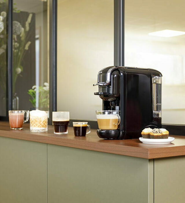 Optez pour cette machine expresso multicapsules pour déguster tous vos cafés et boissons préférées des gammes Nespresso, Dolce Gusto et dosettes souples, ainsi que le café moulu à doser vous-même.