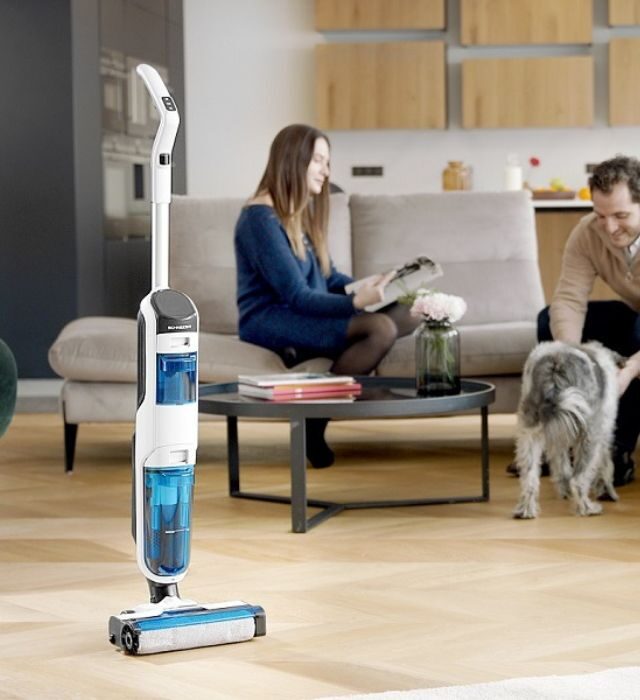 Le balai aspirateur lavant Dual Expert est la solution la plus rapide et efficace pour nettoyer tous les sols. Il aspire et lave en un seul passage : gain de temps assuré !