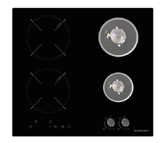 PLAQUE SCHNEIDER 2F GAZ + 2Z INDUCTION 60CM VERRE NOIR